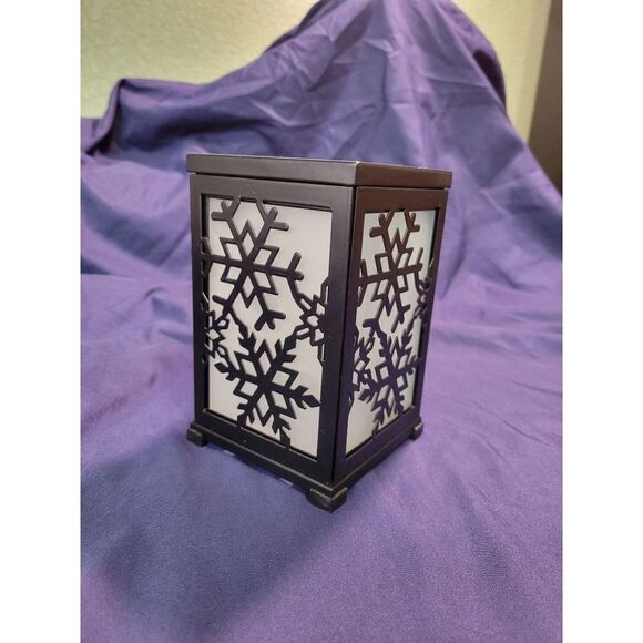 This is a frosted four panel PartyLite Change-O-Luminary candle holder with two magnetic snowflake panels. This candle holder measures 5.625 inches in height, 3.375 inches in width, and 5.25 inches in depth. This candle holder is preloved and does have some stains that are pictured.