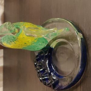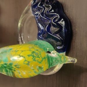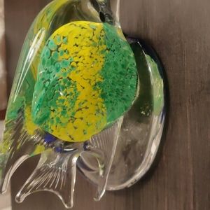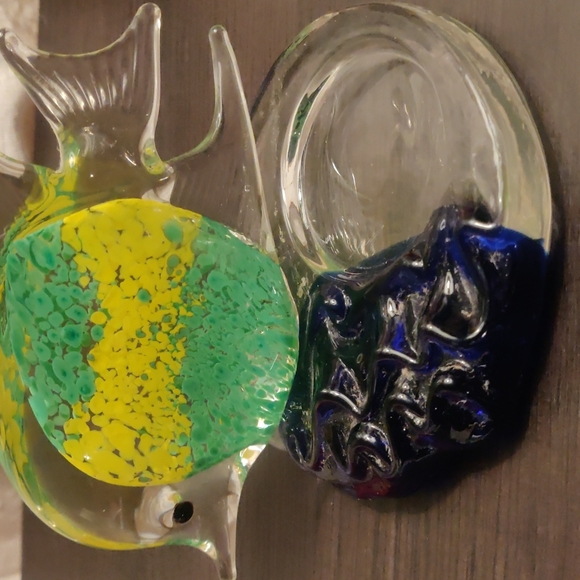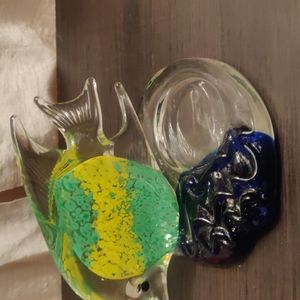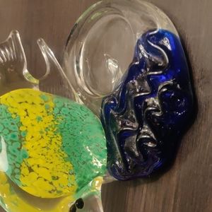 Glass, Green & yellow fish in deep blue ocean,No damage, cracks,chips.mint condition like new votives candles holders