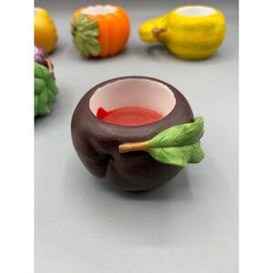 Add charm with these ceramic candle holders shaped like fruits and veggies. Ideal for home decor or gifting.