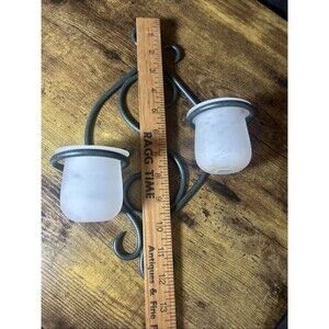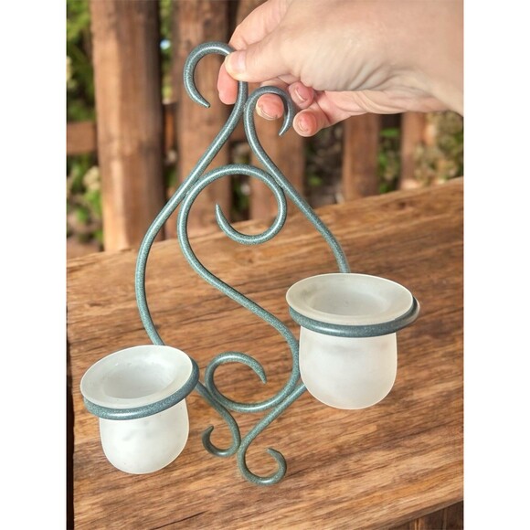 Partylite Candle Holders Scroll Sconce Green Wrought Iron Frosted Votive Holders