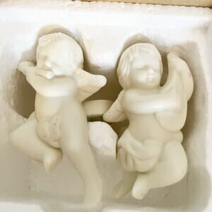 Partylite Cherub Candle Followers – Ivory Bisque Porcelain (1998--VINTAGE IN BOX!)