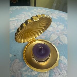 Partylite *Coastal~Chic* Candle Holder Clamshell Compact Goldtone Metal Tealight