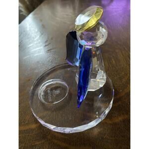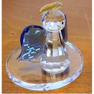 Partylite Crystal Faceted Optic Angel Gold Halo Blue Tealight Holder 4” Tall Blue wings, no chips or cracks