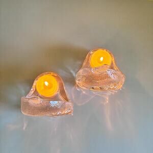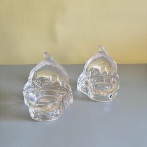 A beautiful retired Partylite dolphin tealight holder set, crafted from heavy, high‑clarity glass with sculpted dolphin forms that catch and reflect candlelight. These coastal‑themed holders make a stunning display on mantels, bathrooms, beach‑house décor, or as part of a Partylite collection. Solid, weighty, and full of ocean‑inspired charm.