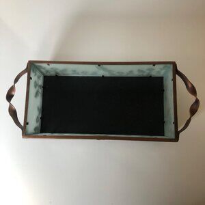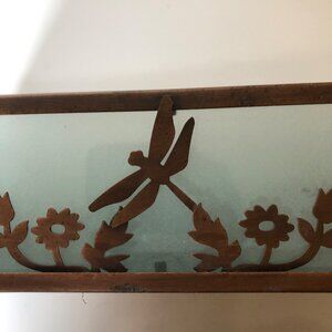 Partylite Flowers Butterfly Dragonfly Tray Copper Color Base and Frosted Glass