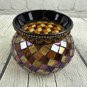 Partylite Global Fusion MOSAIC GLASS VOTIVE CANDLE HOLDER W/Candle Retired