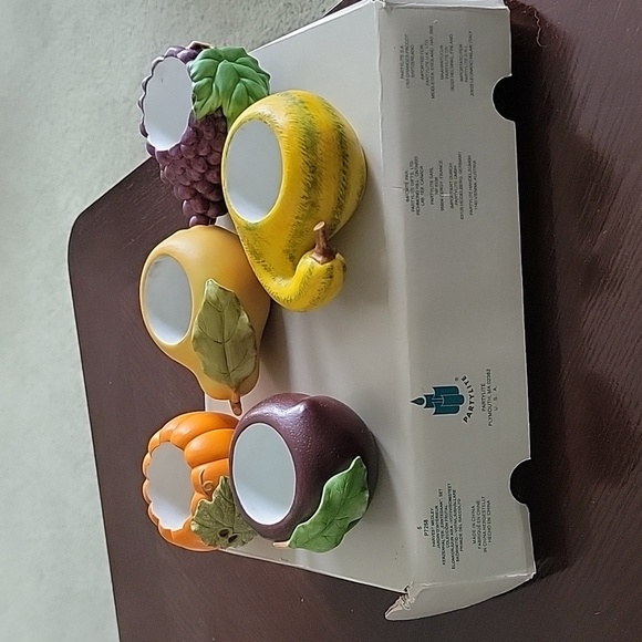 Good used condition, harvest tealight/votive holders. I used votives as you can see and they made marks in the bottoms. No scratches or nicks on paint