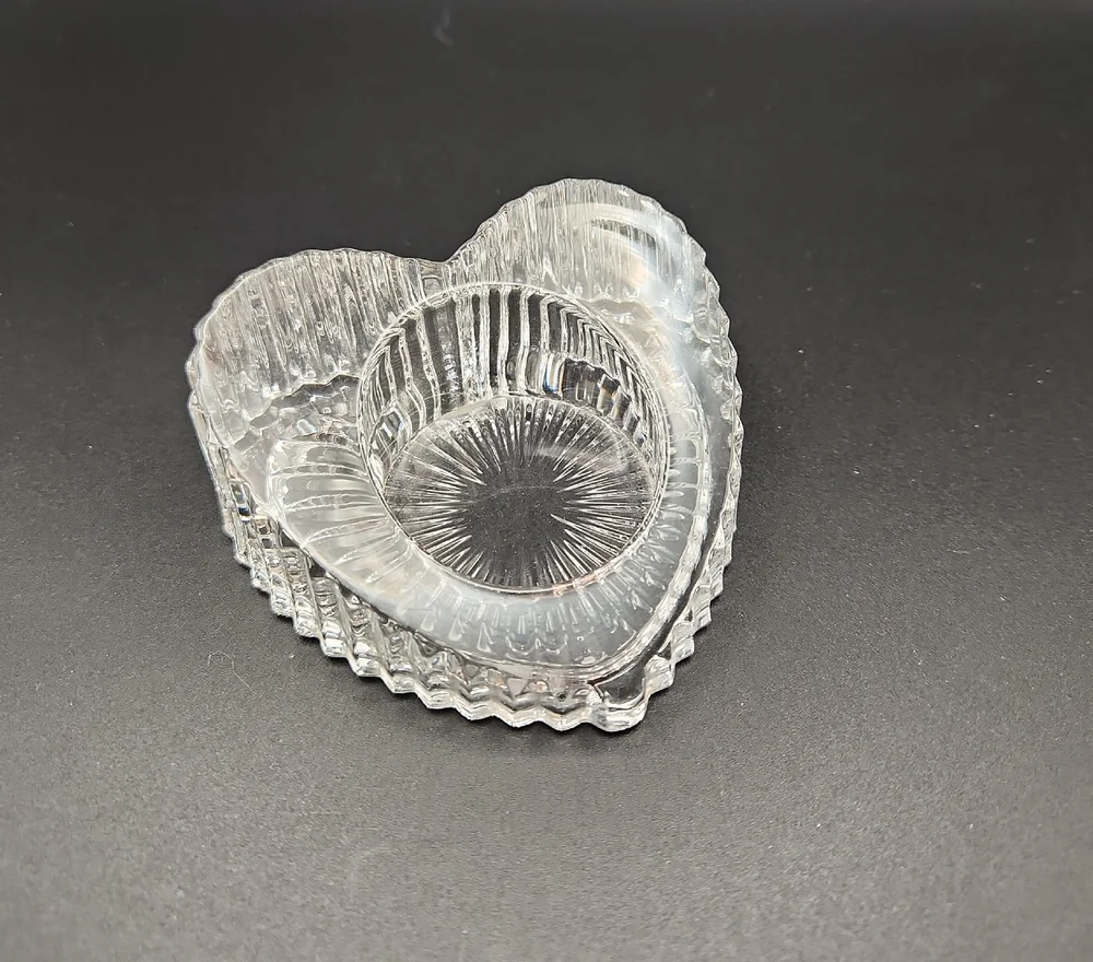 Vintage Partylite lead crystal heart tea light holder in excellent condition. No chips, cracks, or breaks.