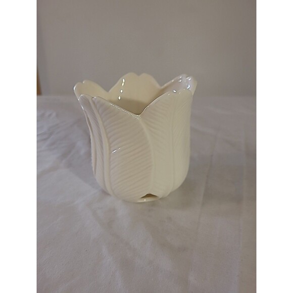 Partylite Ivory Lotus Ceramic Candleholder With Candle