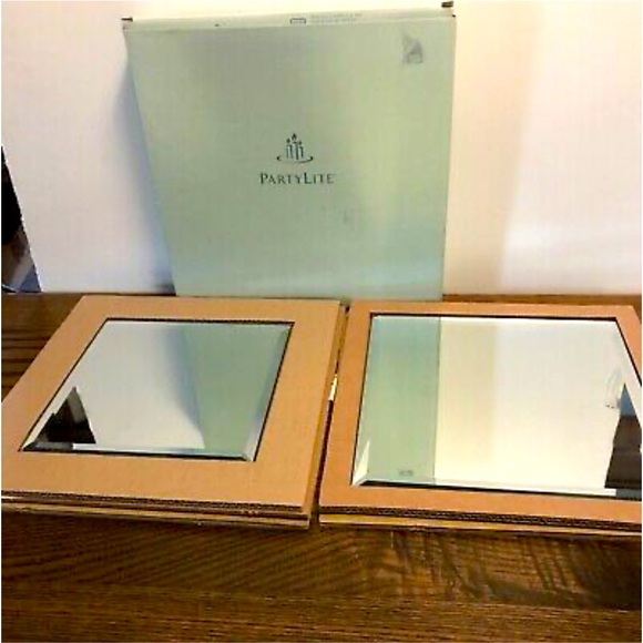 PartyLite Set Of 2 Square Beveled Mirror Displays 7" squares