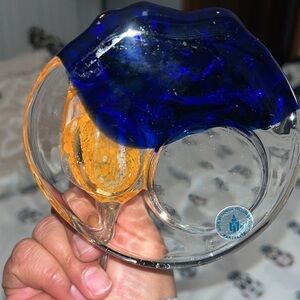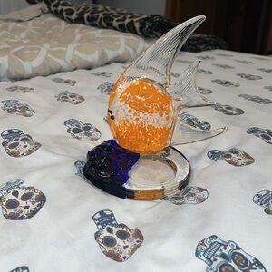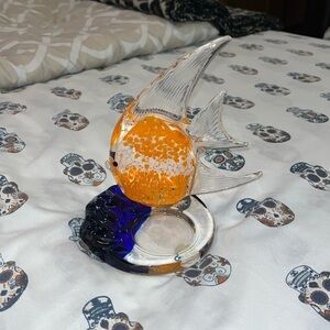 PartyLite Tropical Fish Art Glass Tea-light Holder, orange and blue. 6” tall. Vintage, like new. Please see the pictures as part of description.