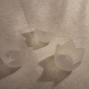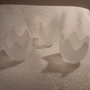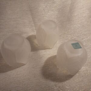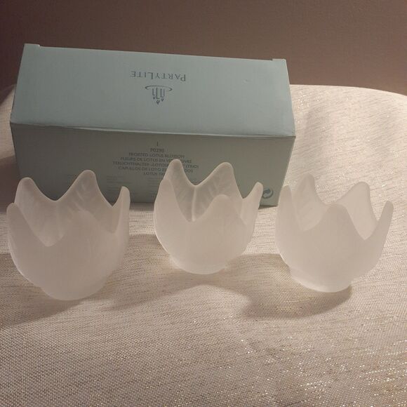 Partylite P0290 Frosted Lotus Blossom Candle Holders Set of 3 Glass Tealights