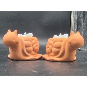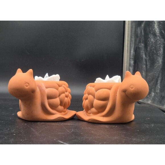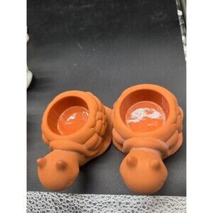 This Partylite set of 2 turtle terracotta candle holders with battery-operated candles is a realistic and asymmetrical decorative collectible suitable for all occasions. Made of terracotta and ceramic with a matte finish, these medium-sized candle holders feature a turtle design that adds a touch of art and animals to any room. Perfect for tealight and votive candles, these retired holders from the 21st century are a unique addition to your collection, bringing a brown color and turtle subject to your space.