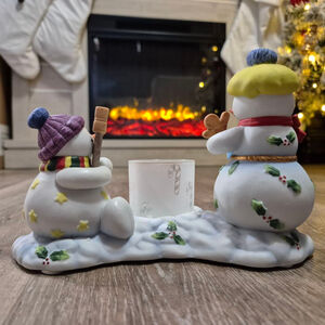 Partylite Snowbell Kids Votive Candle Holder P7869 Snowmen Having Smores & Cocoa