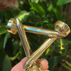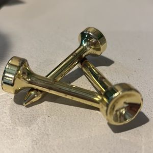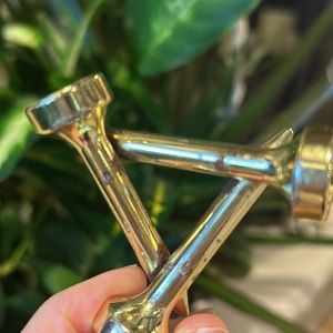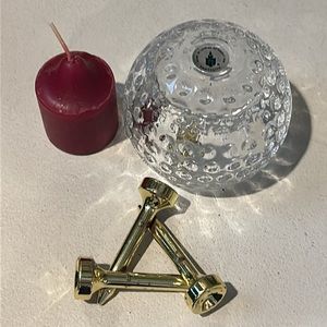 Pre-owned Crystal Golf ball Votive Holder with a base made of 3 tees. The gold plating is showing some discoloration as shown in the photos.