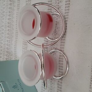 Partylite candle holder tea light candles, frosted glass, looped silver design.