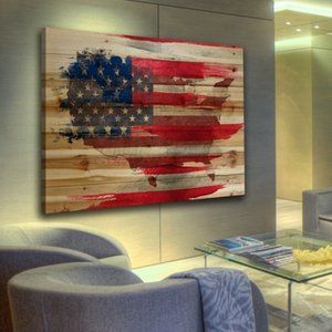 Parvez Taj American Map Natural Pine Wood Wall Art