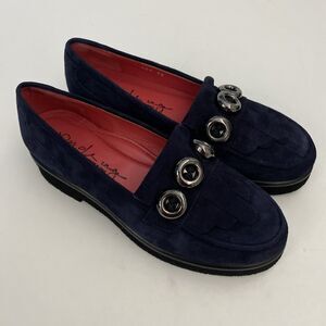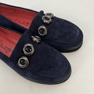 Pas De Rouge Navy Suede Loafer Shoe Casual Slip On Flat Button Round Moc…
