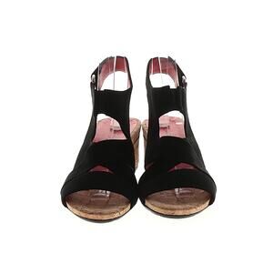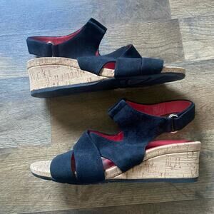 Pas De Rouge Sandals Wedge Heels Cork Suede Leather Black Gladiator Strappy