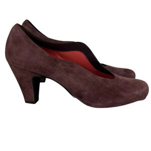 Pas de Rouge Women’s Heels 41 US 11 Burgundy Suede Leather Pumps Italy 3”