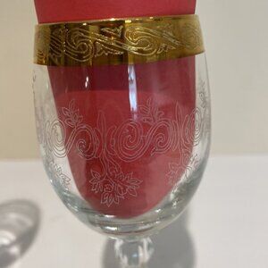 Pasabahce Circle Wine Glasses Gold Rimmed Art of Glass Turkey Set of 5 NWOB