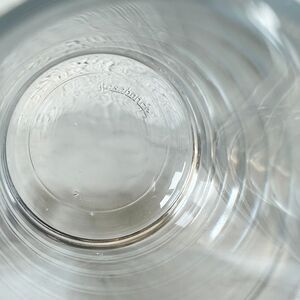 Set of four Pasabahce juice glasses made in Turkey. Glasses are clear with no decoration. 4" high, 2-1/2" across the top and 2" across the bottom.