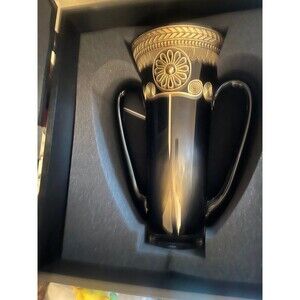 This is beyond beautiful. A true work of Art. One of the “Two- handed Trojan Nest of Lost Treasures limited edition. Only 2000 Made in Turkey by Pasabahce Magazalari, a Turkish glassware company, this piece is from their “History-Culture-Glass Collection. The Troy Two Handed Vase took its form from the handled cups (depas*)specific to Troy and the vase is decorated with relief patterns representing gold jewelry from the Troy treasure in covered from the ancient city. It is produced from handmade dark blue and black powdered glass and all of the relief patterns on it are decorated using gold and antique paints.