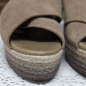 Paseart Size 40 Tan Double Strap Suede Espadrilles Wedges Shoes Made in Spain