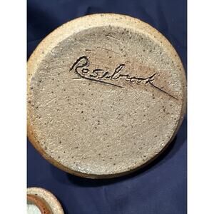 Paseo Collin Rosebrook Stoneware Pitcher Pottery w/ Lid Tan & Blue Oklahoma