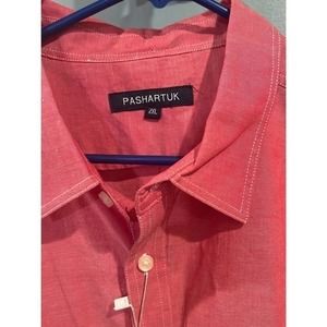 Pashartuk Button Down Short - Mens XXL - 25 inch pit to pit - 33 inch collar to waist - 100% cotton linen like feel - red color