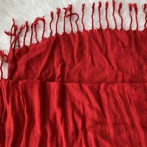 Pashima 100% Cashmere Women’s Scarf, Bright Festive Red Tasseled 68" X 27".