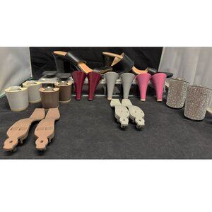 Heels: Black 3" Block, Taupe 3" Block(,matching under shoe stilo support) White 3" Block, Rhinestone 4" Block, Grey 3" Stiletto(matching under shoe stilo support), Wine 3" Stiletto, Pink 3" Stiletto