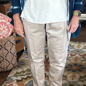 Pashko Contemplation Chino Women's Pants; relaxed fit and tapered to ankles. The pants are a large; I am a size 12 and the waist is a bit loose but can be tied with drawstrings