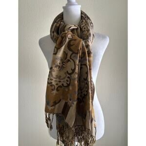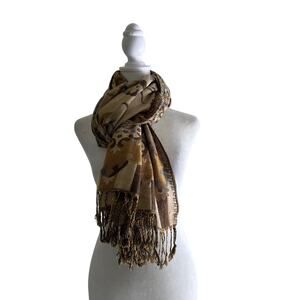 Pashmina 100% Pashmina Shawl Wrap Brown Leaf Scarf Tassel Hem Winter Accessories