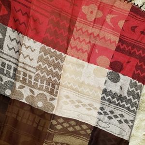 Amazing condition Pashmina. I dont know what the material is because its written in Hebrew but its a soft blend of some sort. Woven symbols resemble those of LV, however there are no tags. Only flaw is some loosening of the threads, as shown. Pet-free and smoke-free home.