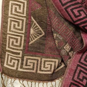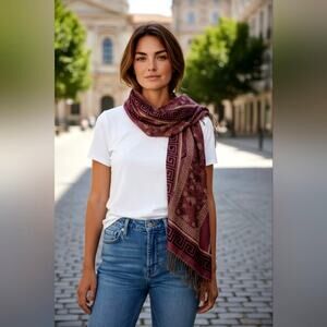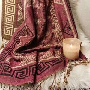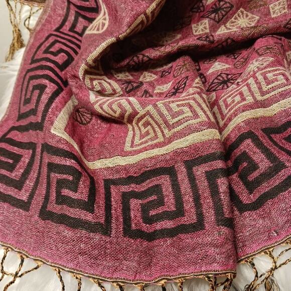 Pashmina EXOTIC Shoulder Wrap Shaw 68" x 25" Maroon & Gold LARGE Fringe Aztec
