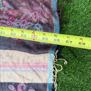 Vibrant pashmina scarf with intricate paisley design. Soft and stylish accessory.