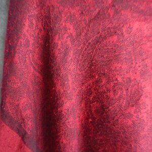 Fabric label in full view in photos. These who are very popular in the later 90s, but continue to be a wardrobe staple and wonderful to have around due to their versatility. This one is red and black which, blended together, make a nice dark deep red wine red color. Exotic Paisley, the usual fringe at the edges. No flaws. I'm not wearing my pashminas, so I am selling a some of them, so keep an eye out! Maybe I'll have a color you're looking for?