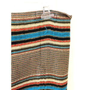 Beautiful multicolor pashmina scarf in very good condition. There are only a few small snags, which would not be seen while wearing the scarf. The colors are bold and bright and there is small beading throughout the scarf.