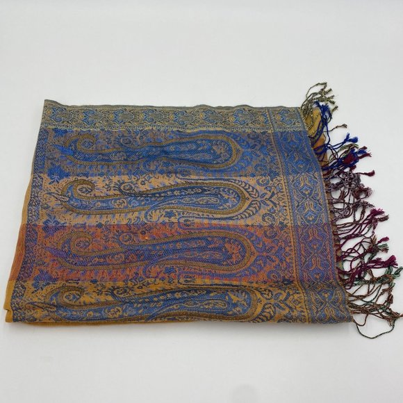 Pashmina Scarf Pashmina Silk Beautiful Multi-Colored Paisley Pattern Fringe - 27