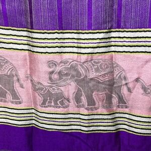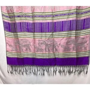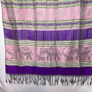 Pashmina Shawl Wrap Scarf Womens Purple Pink Gray w/ Elephant Print fringed ends