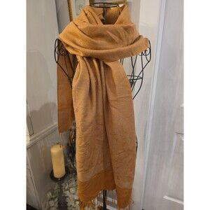 Pashmina Silk Scarf Gold Paisley Fringed Wrap 72x28