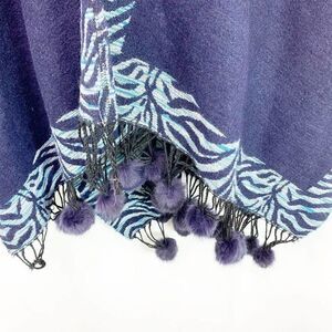 Pashmina Womens Navy Blue Animal Print Rectangle Shape Reversible Shawl Scarf