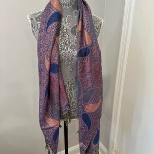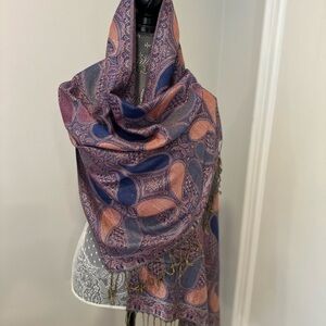 Pashmina Womens OS Paisley silk blend Purple Blue & Silver Sparkle Scarf w/ Tassels. Excellent condition. Light wear. No rips, stains or defects.