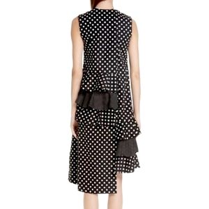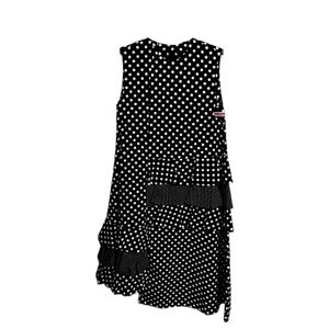 Paskal designer black & white polkadot asymmetric dress with ruffle frille fabric accents. New, with "Last Chance" tags only. No flaws.