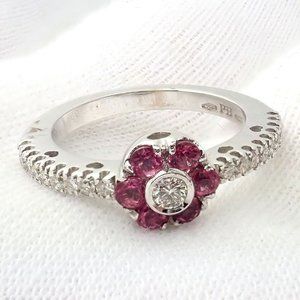 Authentic! Pasquale Bruni 18k White Gold Diamond Pink Sapphire Flower Fiori Ring