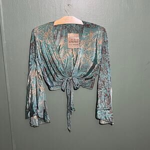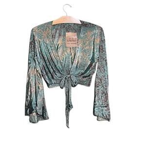 Passage to India Crop Top Wrap Bell Sleeve Boho Floral