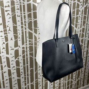 Additional Details: Removable tassel accent, magnetic snap closure, bottom feet, one interior slip style pocket.
