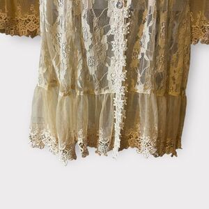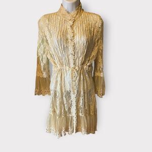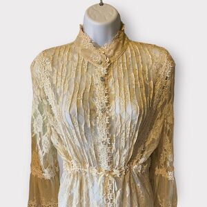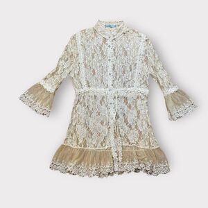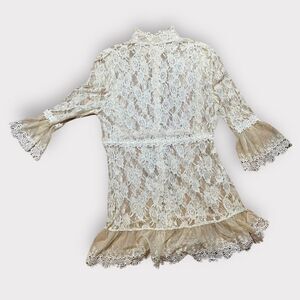 Passion Concept Top Ivory Lace Sheer Bell Sleeve Victorian Button Blouse XL