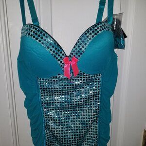 Passion Forever Bustier Embelished Slip Lingerie XL TealColor Silver Sequin NWT